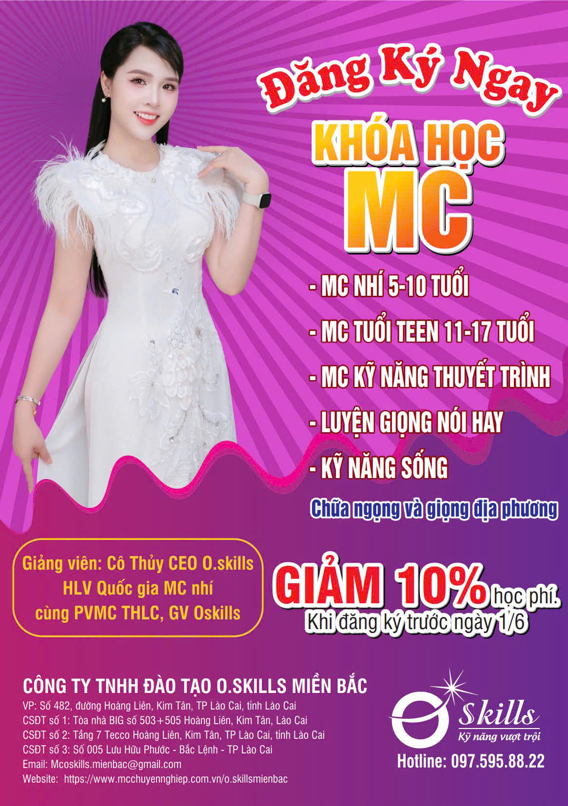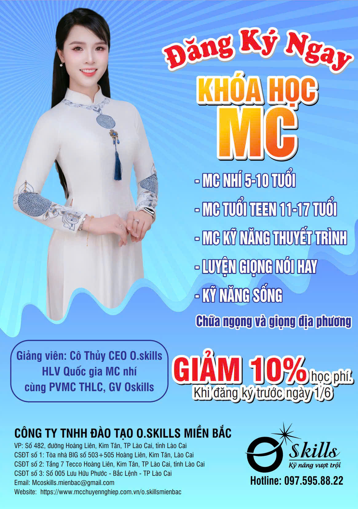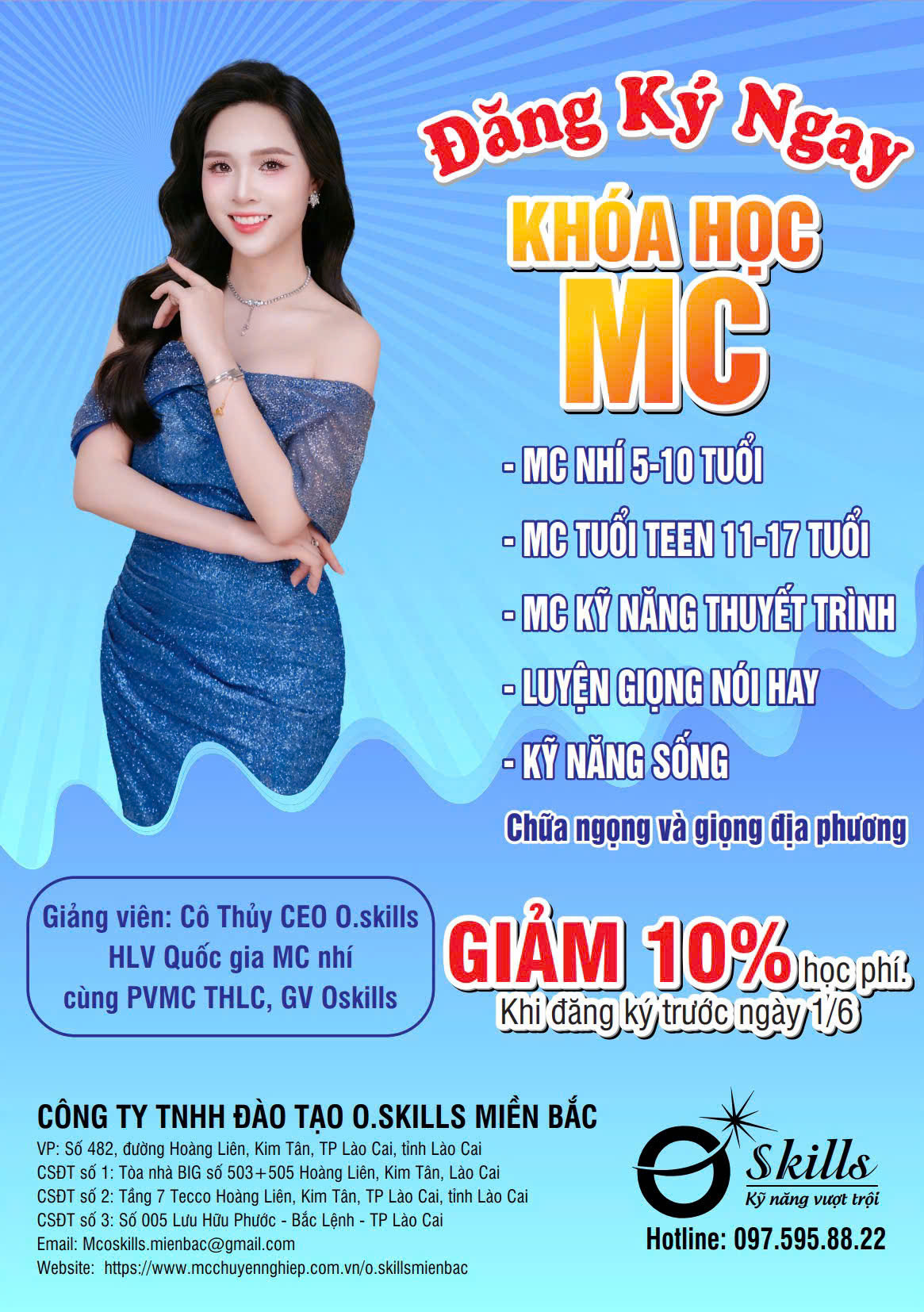 Tưng bừng chào hè 2025 với các khóa học MC – Kỹ năng sống- Chỉnh ngọng và giọng địa phương mọi độ tuổi Ngày đăng: 28/05/2025 Bài viết liên quan - LỊCH NGHỈ TẾT DƯƠNG LỊCH NĂM 2023 - LỊCH HỌC THÁNG 1/ 2024 - LỊCH ĐÀO TẠO MC VÀ CHỈNH NGỌNG, LUYỆN GIỌNG NÓI VÀNG - LỊCH HỌC THÁNG 11 - LỊCH HỌC THÁNG 10